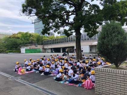 少し早いですが、木陰でお弁当タイム。おうちの方の愛情いっぱいのお弁当を楽しくいただきました。
