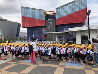 海遊館に着きました。トイレに行って、お茶を飲んで、見学の準備をしています。他の学校の友達がいっぱい来ています。