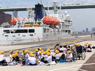 向こうに見えるのは、韓国の客船です。