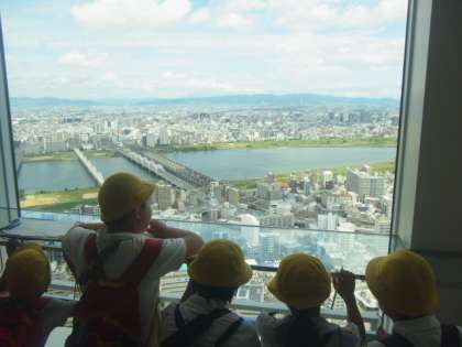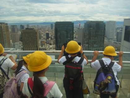 大阪駅で途中下車をして、人があふれかえっている大阪駅を抜けて、スカイビルに向かいました。空中庭園では、淀川や、生駒の山々、大阪城を探しました。伊丹空港や、エキスポの観覧車も見つけました。大阪を更に知ることができました。