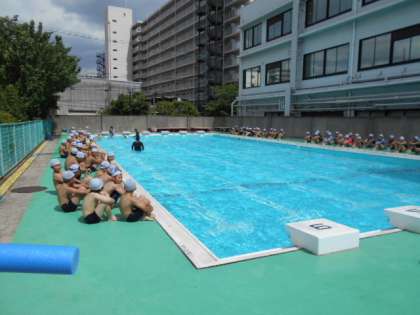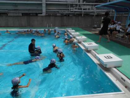 6月17日、子どもたちが待ちに待ったプール水泳が始まりました。3時間目までは、水温が規定よりも低くて入れませんでしたが、4時間目から水温も上がり、泳ぐことができるようになりました。