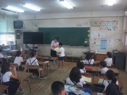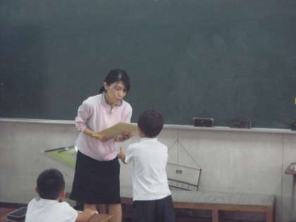 今日は、1学期の終業式です。式の後、教室に戻り、通知表を受け取りました。担任から児童一人ずつに言葉が添えられました。児童は2学期もがんばろう!という気持ちになりました。