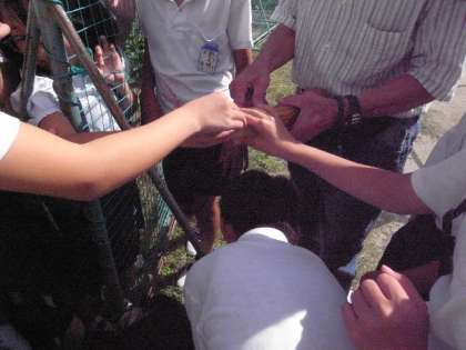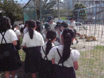 学習園をお世話いただいている地域の方が2年生のサツマイモの様子を見て、お世話いただきました。2年生もご挨拶をしましたが、ちょうど5年生がヘチマの見学に来ました。ヘチマの実が枯れてタワシのようになっている様子を見せていただきました。いつもありがとうございます。