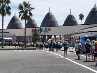 おのころに到着しました。クラスで写真を撮って、お楽しみの班活動です。ゾンビの館に行くという声が