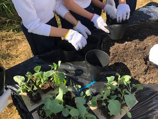 もう一つのチームはブロッコリーをポットに入れて持って帰ります。お土産です。お楽しみに。