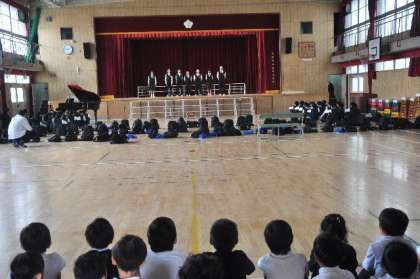 小学生のみなさんは、11月の学習発表会で今日見せてもらった中学生の演技や歌声に追いかけてほしいと思います。