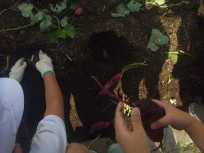 11月7日、4時間目、2年生が一生懸命に育てたサツマイモを収穫しました。