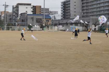 今は凧揚げをしています。寒風に負けずに元気に走っています。