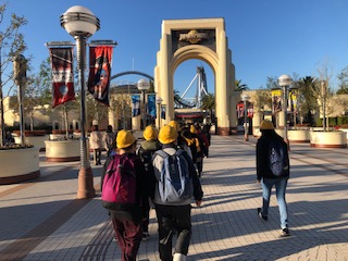 USJに到着しました。入り口にはすでに沢山の人が並んでいます。待っている間に写真を撮っています。