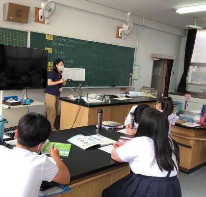 実験は安全のため、先生が前で行い