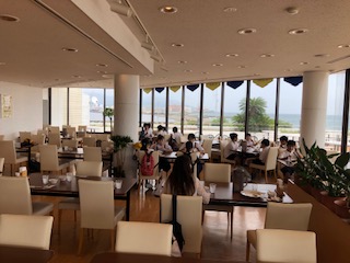 海の見えるレストランでカレーライスのバイキングです。明日、何杯お代わりしたか?是非、聞いてみてください。