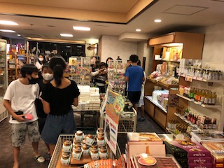 お土産のお買い物タイムです。おかあに、おじいちゃん、おばあちゃんに、兄弟に、そして自分にと、色々考えて、悩んで買い物をしています。