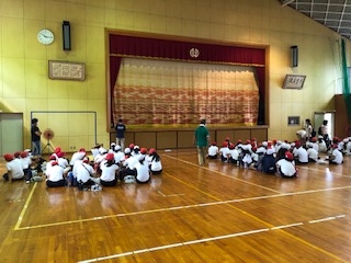 農業体験です。いつもは畑で体験をするのですが、お天気が、思わしく無いので体育館で体験します。玉ねぎのトリミング、ブロッコリーの種撒き、ピーマンの袋詰を各クラスで体験します。玉ねぎとピーマンはお土産です。お楽しみに。