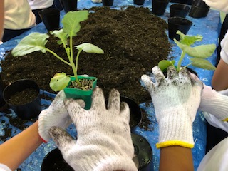 玉ねぎのトリミング、ブロッコリーの苗移し、ピーマンの袋詰の作業です。雨は大丈夫なんですが。