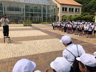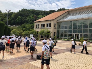 昼食場所に着きました。明石海峡大橋を背景に、学級写真を撮りました。天候は雨ではありません。