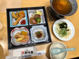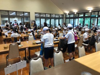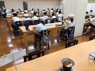 昼食です。いつもは一部屋でみんなで食べますが、今日は二部屋に分かれて食べます。