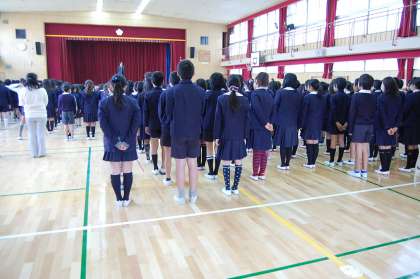 講堂の床の修理が完了し、本日無事に講堂で終業式を行うことができました。