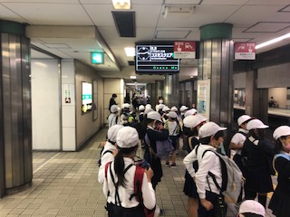 いいお天気になりました。鶴見緑地公園に行きます。植物園ではどんな草花があるか、グループで見学します。各クラス車両を分けて乗車します。