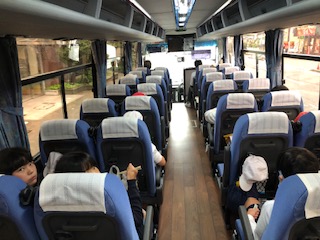予定していた道路のトンネルで事故があったため、通行ができず、大渋滞となりました。まだ大津市内です。予定を変更して、バスの中で昼食をとっています。すてきなお弁当ありがとうございます。