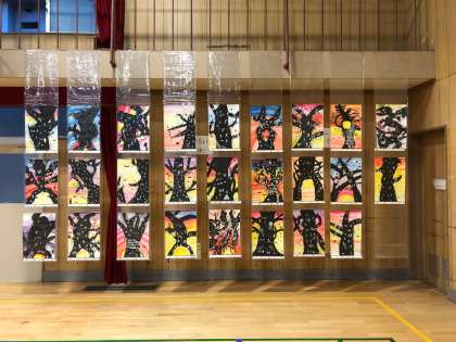 作品展〜5年絵画「夕焼け空に魔法の木」〜
