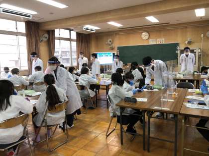 薬A・薬Bを胃液・腸液と書かれた小瓶