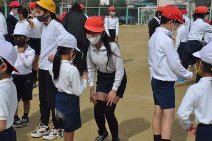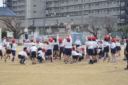 今日は1年生との交流です。最初に「ふえおに」をしました。6年生は1年生を追いかけるとき「けんけんしよか」という声も。次は対抗の玉入れです。これhが6年生の負け。最後は一緒になってじゃんけん列車です。本当にみんな楽しいそうにいい笑顔でした。最後に6年生から1年生にプレゼント、1年生からは「中学校でもがんばってね」とのエールがありました。