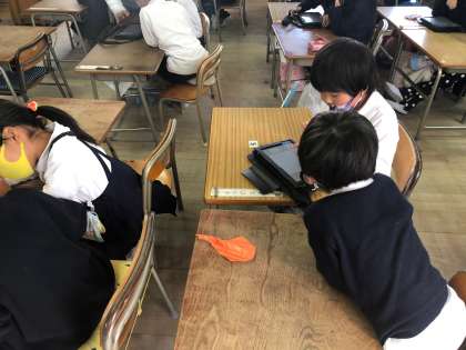 全校児童1人1台の端末が学校にとどいて、1年生も