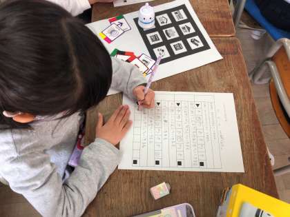 ミニロボットを使って、1年生がプログラ