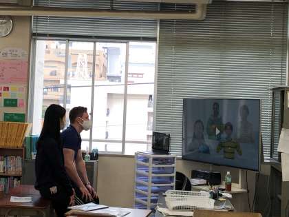 クリス先生と英語専科の先生が代わる代わる話しかけ