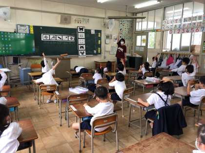 真っ直ぐに手を挙げて「ハイ」と言う