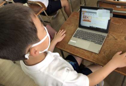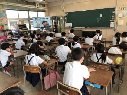校長先生がオンライン朝会で絵本を読み聞かせながら、