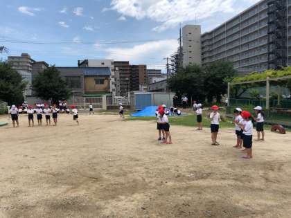昨日に1年生は運動場で生活科の水遊びを楽しみました。