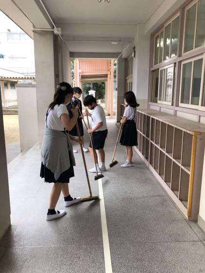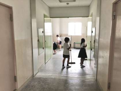 昼休みのそうじの時間には、低学年の子も高学年