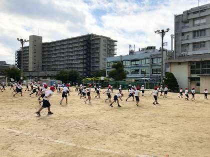 昨年は各学年ごとに運動場に出て演技や競技