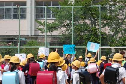 地域で災害や犯罪等が起こった場合、身の安全を守るための訓練として、1カ月に1回、集団下校を実施しています。明日も集団下校を行います。目標は、昨日よりも早く集合して、下校できるようにすることです。全学年で力を合わせて頑張ります。