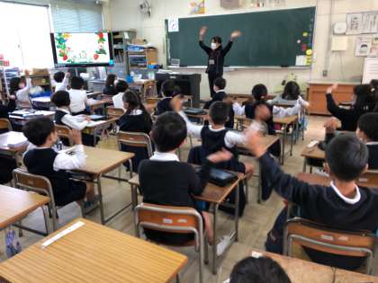 身ぶり手振ぶりも交えながら、楽しく歌う1年生。