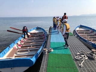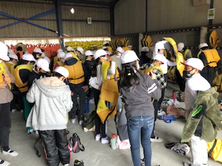 2組と3組が出航します。1組は箸作りをしています。