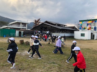 お昼の活動がおわりました。日がが落ちると風が冷たいです。今から部屋割りをして、避難訓練をします。