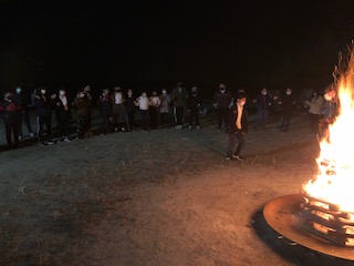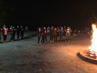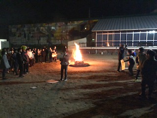 キャンプファイヤーです。クラスごとにゲームやダンスなどを披露しています。とても、楽しく活動しています。