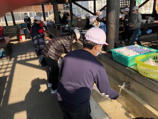 包丁やお鍋を洗ったり、火のおこし方の説明を聞いたりと、一生懸命です。