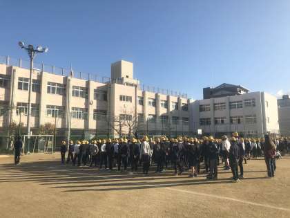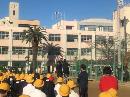 今朝の全校朝会は、久しぶりに運動場で行いました。