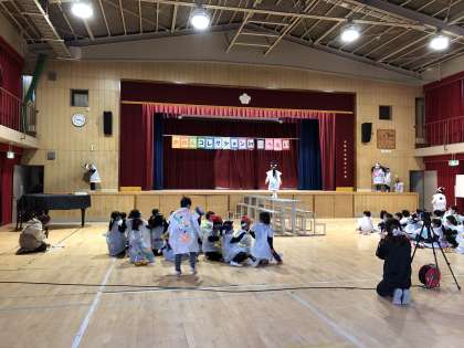 一人一人ご自慢の個性あふれるお面をかぶっての登場です。