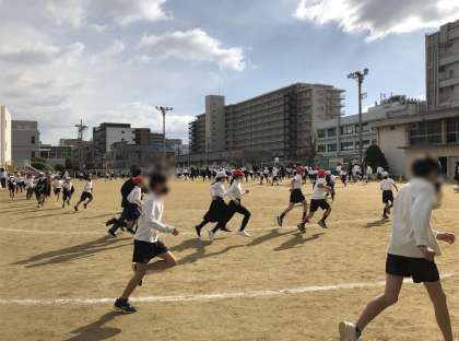 寒さに負けず、さわやかに運動場を駆け抜けて