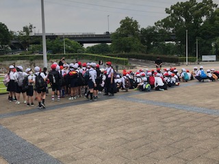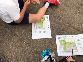 久宝寺緑地公園に到着しました。地図をもらってオリエンテーリングをします。