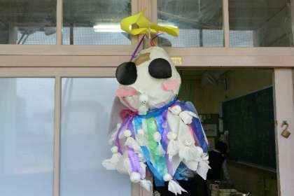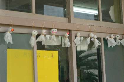 今週の木曜日6年生は修学旅行に行きます。木曜日はネスタリゾート神戸に行くのですが、雨が降ると楽しみにしているアトラクションができません。そこで、各クラス思い思いにてるてる坊主を作りました。