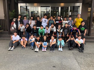 ホテルの玄関で記念撮影です。この後、お風呂に入って、お楽しみの夕食です。