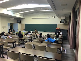 班長会議です。今日の反省と明日の予定の確認です。他の人はもう寝る準備ができています。