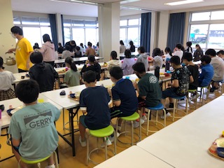 朝ごはんです。食事係のみんなの仕事もテキパキ。スムーズに準備ができました。