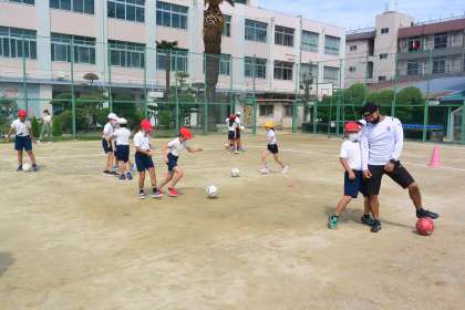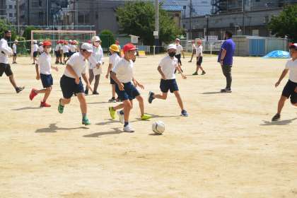 ボールの扱いを丁寧に教えてもらいました。すごく暑い一日でしたが、2時間しっかりサッカーを楽しみました。