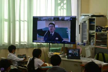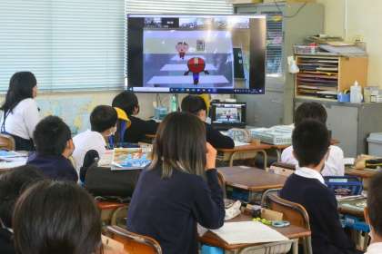 東成警察の交通課のおまわりさんに来ていただき、交通安全について勉強しました。交通ルールを守ること、標識のことなど紙芝居を使って教えていただきました。